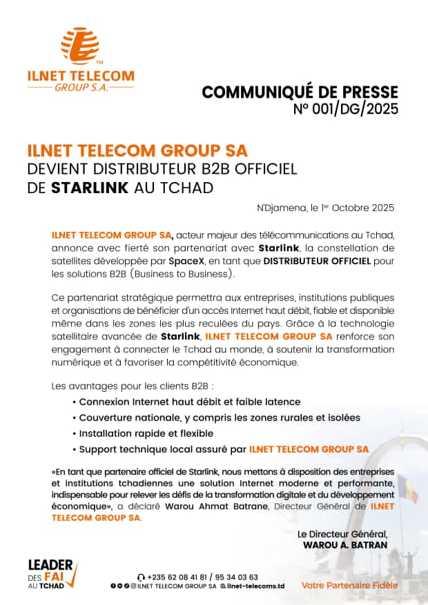 Après avoir pris la tête de distribution des réseaux Internet, IlNET groupe SA signe un partenariat avec la Starlink pour la distribution du réseau internet. Ce partenariat stratégique permettra aux entreprises, institutions publiques et organisations de bénéficier d’un accès internet haut débit fiable et disponible même dans les zones les plus reculées.