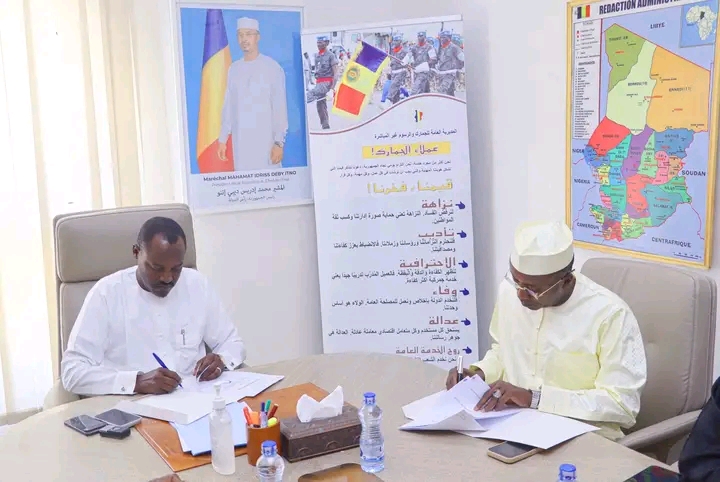 Le Directeur général des Douanes et Droits indirects, Gal de Division Ousman Brahim DJOUMA et le Directeur général du COC Tchad M. Hamid DJOUMINO ont procédé, ce vendredi 05 décembre 2025 ,à la signature d’un protocole d’accord visant à améliorer la compétitivité des chaînes logistiques desservant le Tchad.