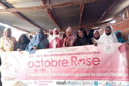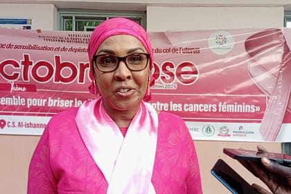 Dr Fatima Haggar, coordinatrice du programme national de lutte contre le cancer à officiellement lancé ce vendredi 03 octobre 2025 la campagne d’Octobre Rose au Centre de Santé Al-Ishanne de Gas...